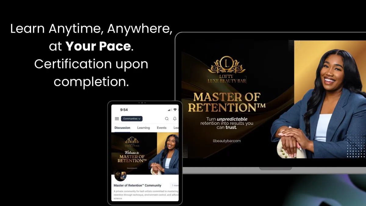 Online lash training is a self-paced education program designed to help lash artists improve technique, lash retention, and application skills through structured lessons. You can access the training from anywhere and learn on your own schedule.